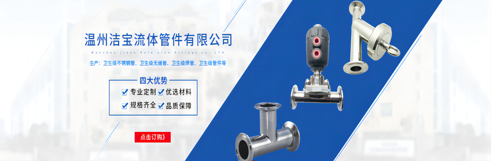 溫州潔寶流體管件有限公司,被譽為浙南地區衛生級食品級不銹鋼鏡面產品當中的佼佼者,擁有衛生級不銹鋼管.衛生級焊管,衛生級閥門管件三大分廠,主營:衛生級不銹鋼管.衛生級焊管,衛生級無縫管,薄壁不銹鋼管等產品。 所有產品均可按照(ISO.DIN.IDF.SMS.3A)標準進行制造。產品廣泛應用于食,制藥.乳品.啤酒.飲料.精細化工領域,各項技術要求均達到國際標準,產品以其合理的結構.卓越的性能.精湛的工藝.深受廣大客戶的信賴與認可。